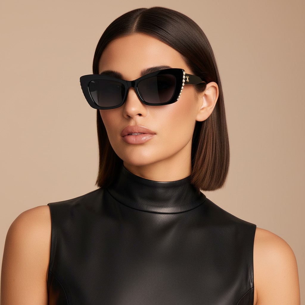 Channel timeless Parisian elegance with these high-quality mirror sunglasses inspired by iconic CHANEL design. Crafted in Italy, they feature sleek black cat-eye frames, crystal-clear UV-protective lenses, and durable hinges for all-day comfort—complete with a branded case and authenticity card for a premium finish. ✨🕶️