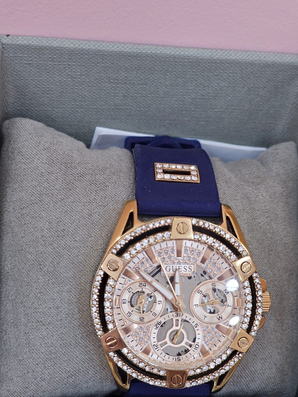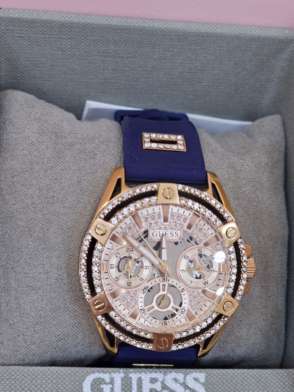 GUESS Ladies’ Rose Gold & Blue Chronograph Watch original